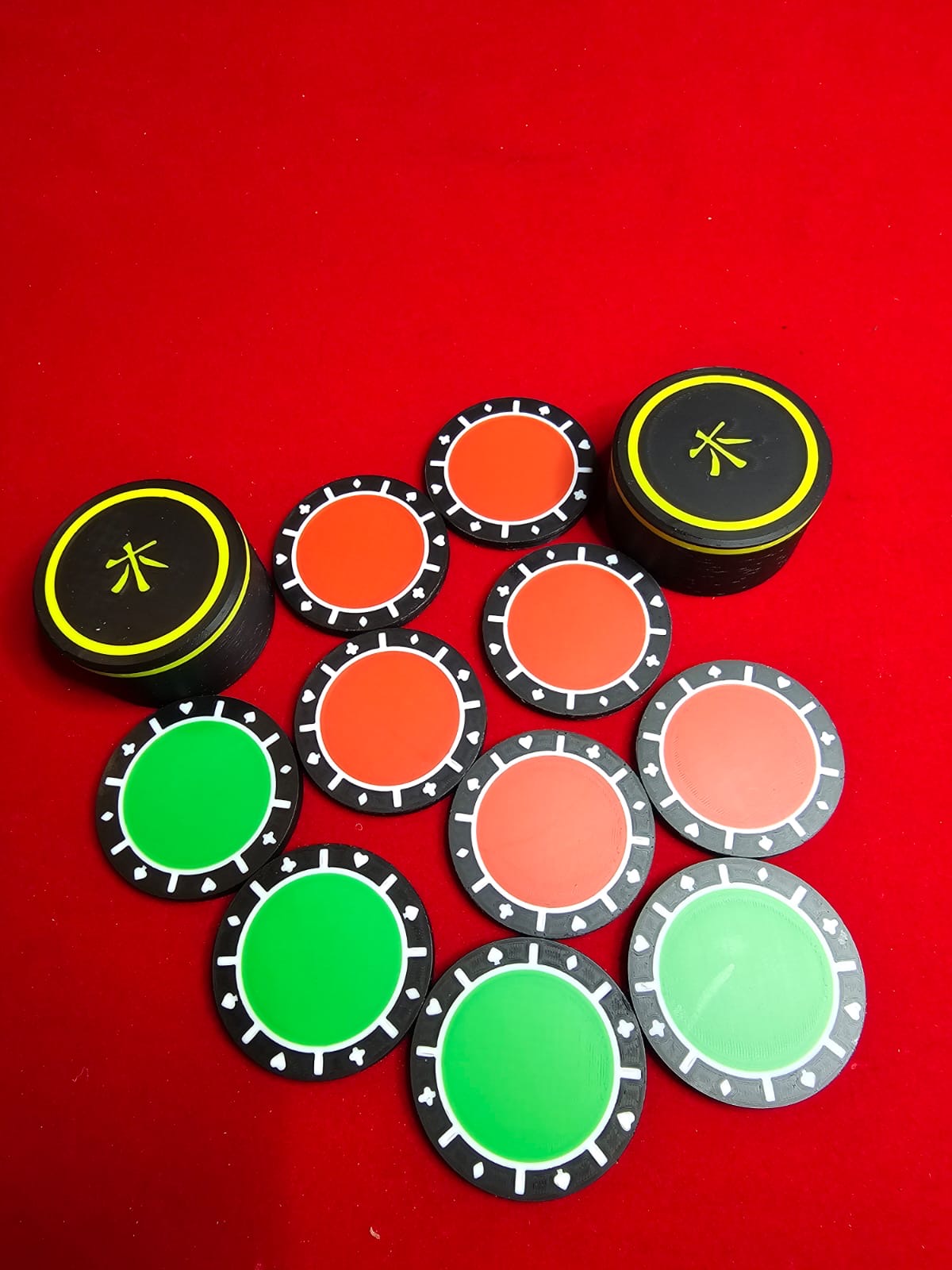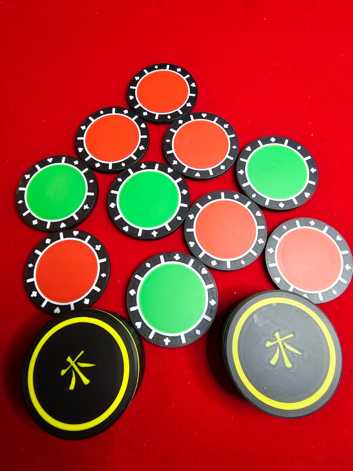 Bei meinem Nachbau zu diesem Kunststück habe ich Kasino-Chips gedruckt. Ich finde diese Chips einfach etwas hübscher als die „normalen“ Chips.